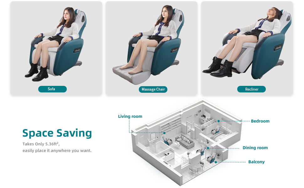 The massage chair takes only 5.36ft², which can be placed in small clearance of living room or other place.